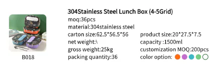 B005-316Stainless steel Food-Grade Stainless Steel Lunch Box(4/5Grid)